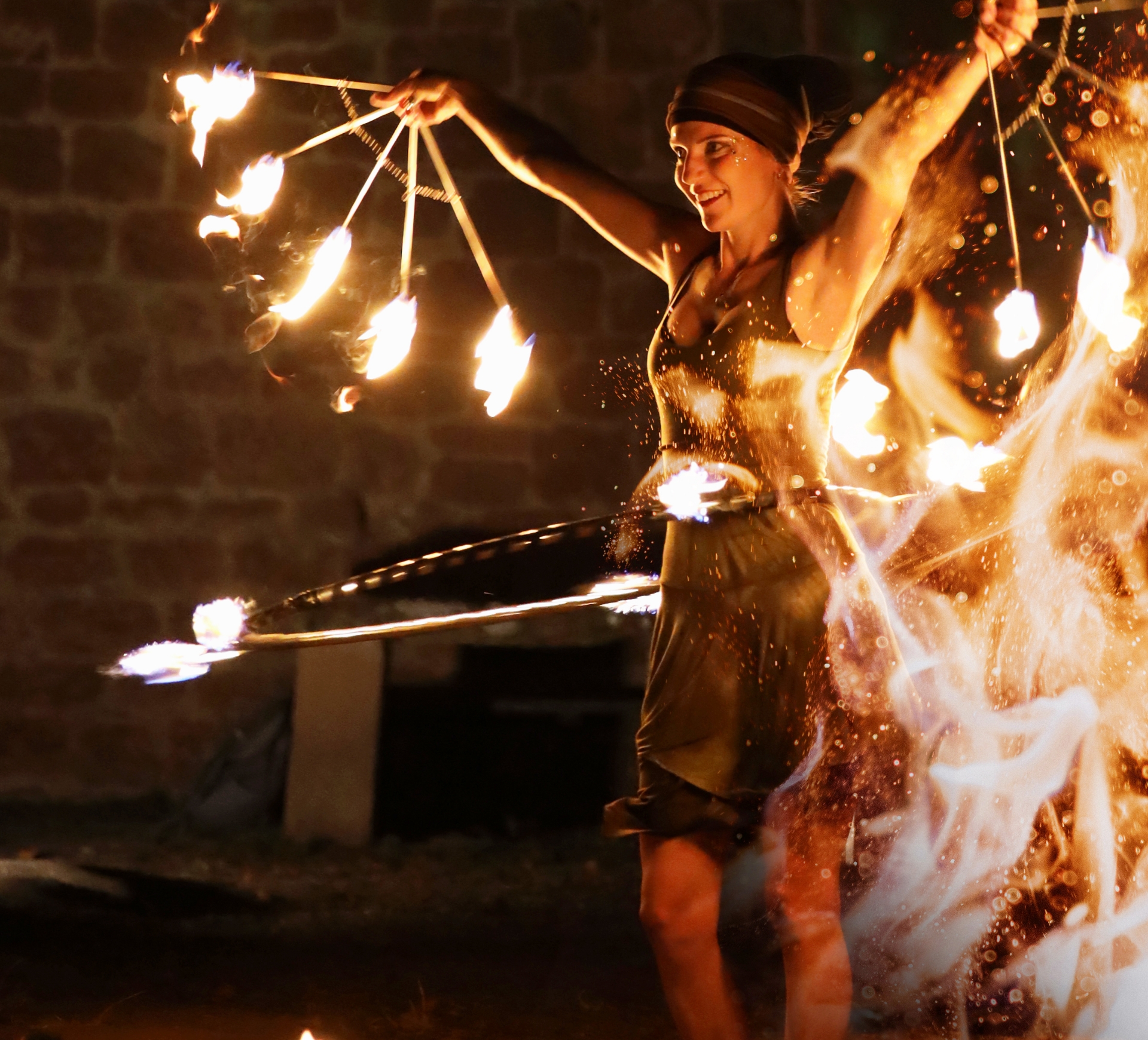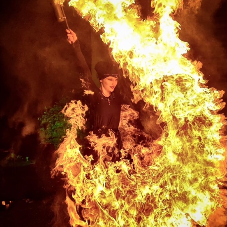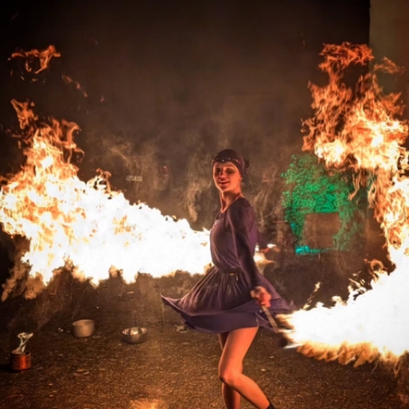 Sie selbst müssen keine Vorkehrungen treffen. Alles Notwendige wie Feuerlöscher und Löschdecken werde ich mitbringen. Vor der Veranstaltung werden wir besprechen, welcher Platz für die Performance geeignet ist. Es sollten keine leicht brennbaren Materialien wie Karton oder Stroh in der Nähe sein. Der Boden sollte eben und fest sein, sodass keine Rutschgefahr besteht. Bei Rasen als Untergrund sollte dieser vor der Veranstaltung ggf. gemäht werden. Wichtig ist auch genügend Abstand zu Wänden und Bäumen.